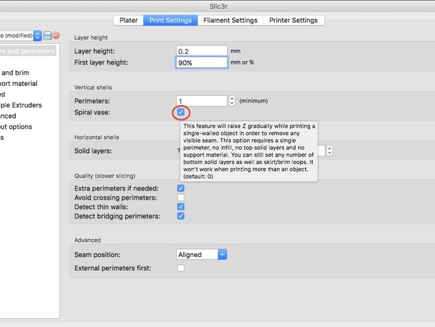 Print parameters
