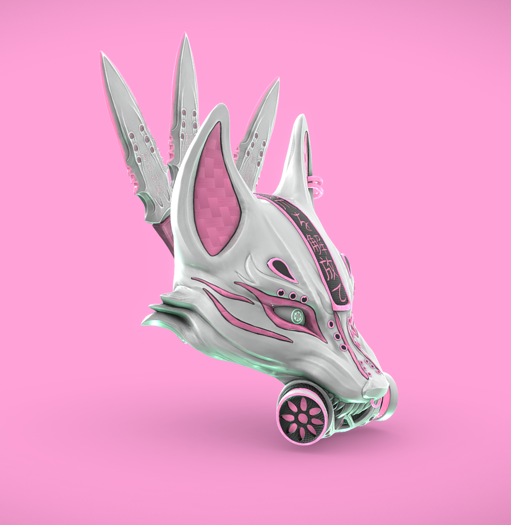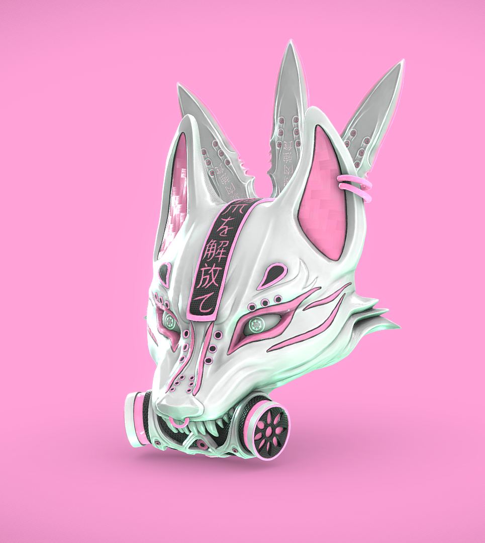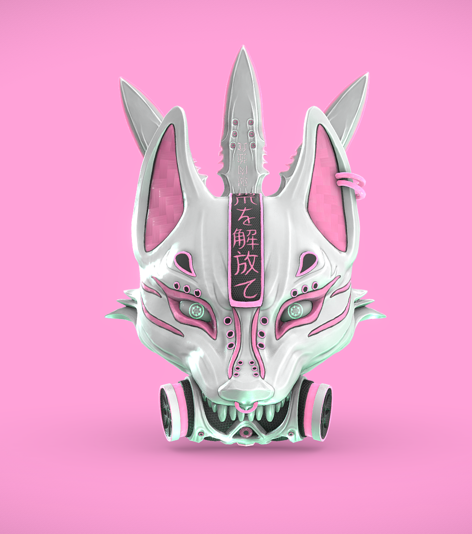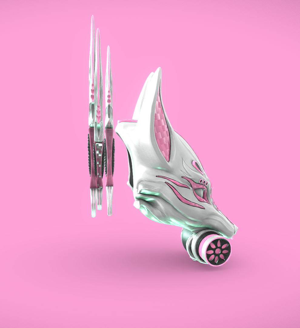 Cyberpunk Kitsune Mask and Kunai