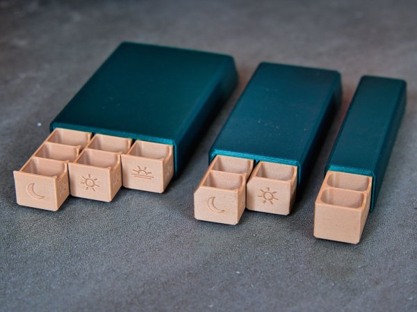 Magnetic Weekly Pill Organizer with Sliding Drawers – Customizable Text, Modular Design